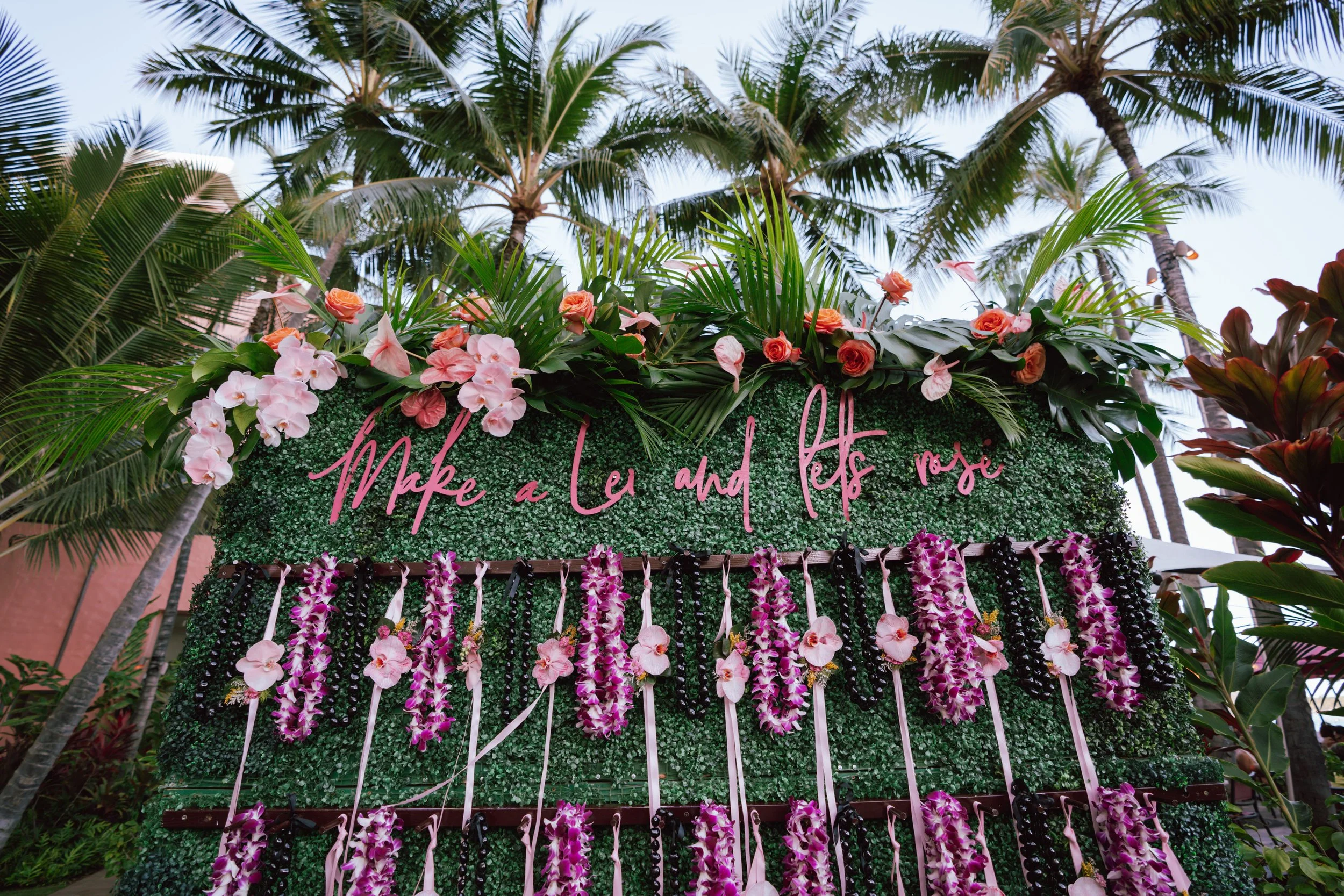Guests were welcomed into the enchanting ambiance with a stunning Rosé bar, showcasing Moët Hennessy's exquisite portfolio of Rosés, setting the tone for an evening of indulgence. The festivities commenced with a lei wall, offering guests the opportunity to select their own lei or craft a personalized creation, enhancing the sense of community and celebration.